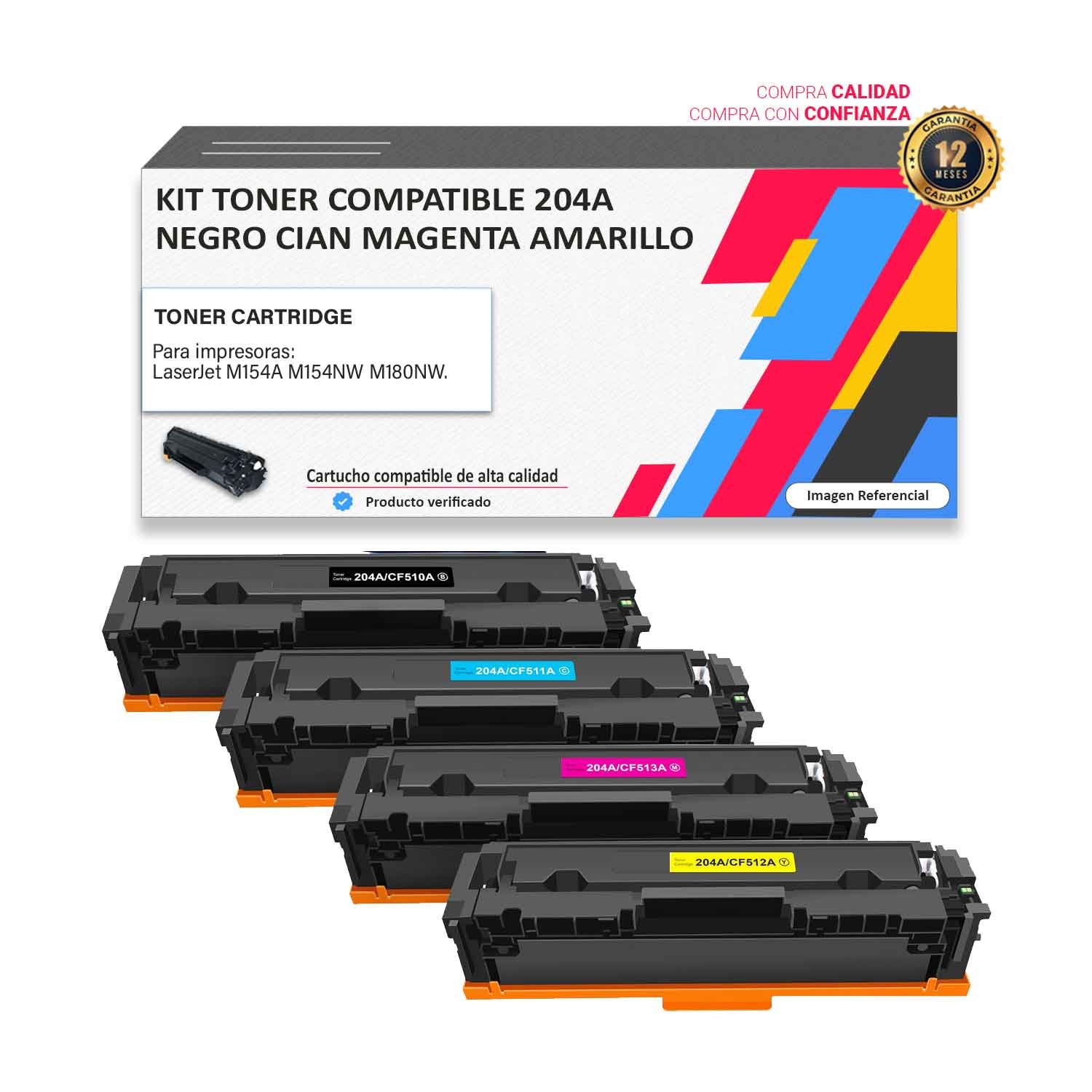 Kit Tóner compatible HP 204A para impresoras 154 M154NW 180. Rendimiento Negro 1.100 Páginas Colores 900 Páginas. Envíos a nivel nacional al por mayor y menor.