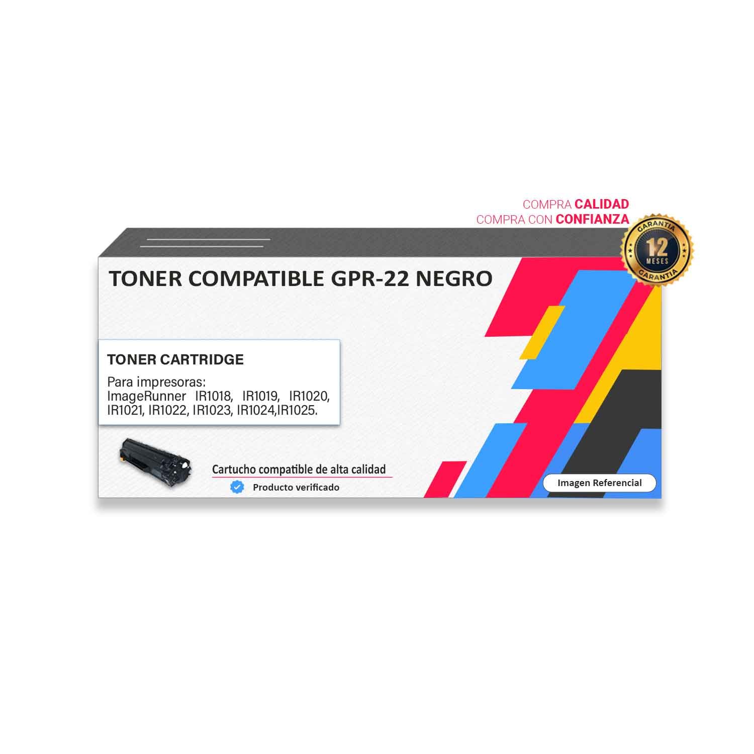 Los toner o tintas compatibles son seguros para las impresoras siempre que se compren en minoristas confiables como el nuestro. Es recomendable comprar Tóner compatible Canon GPR-22 Negro con certificación ISO y una garantía de 90 días. ¿Cómo comprar?