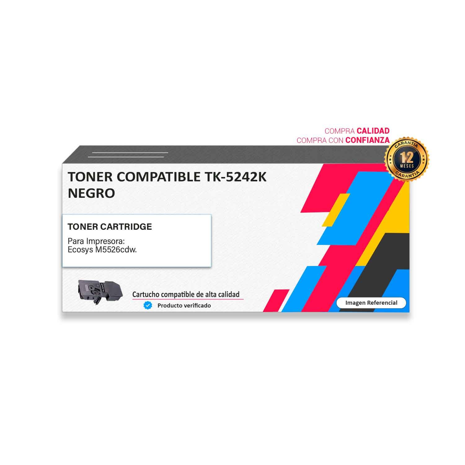 Toner compatible Kyocera TK-5242K Negro para impresora 5526. Rendimiento 4,000 Páginas. Envíos seguros a nivel nacional al por mayor y menor. Garantía 12 meses.