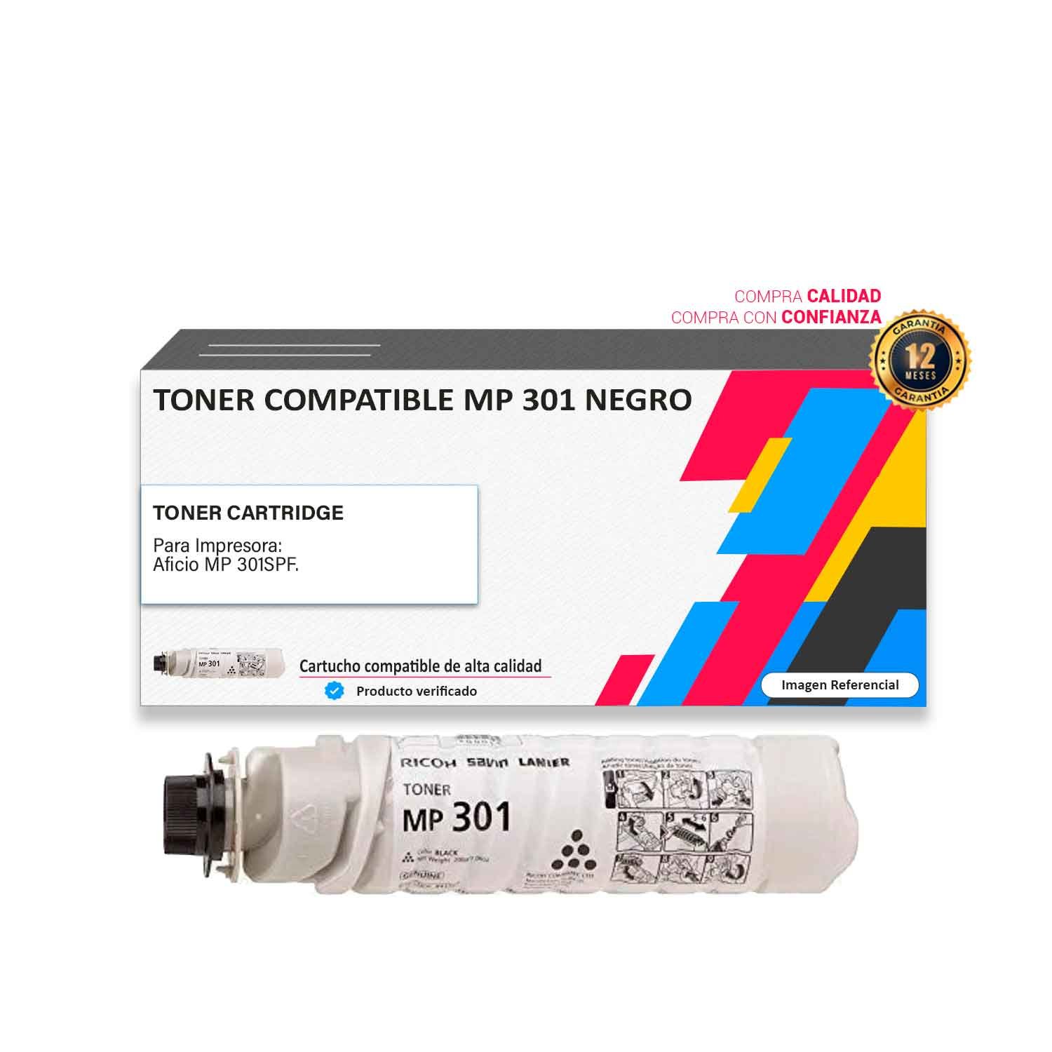 Los toner o tintas compatibles son seguros para las impresoras siempre que se compren en minoristas confiables como el nuestro. Es recomendable comprar Toner compatible Ricoh MP 301 Negro con certificación ISO y una garantía de 90 días. ¿Cómo comprar?