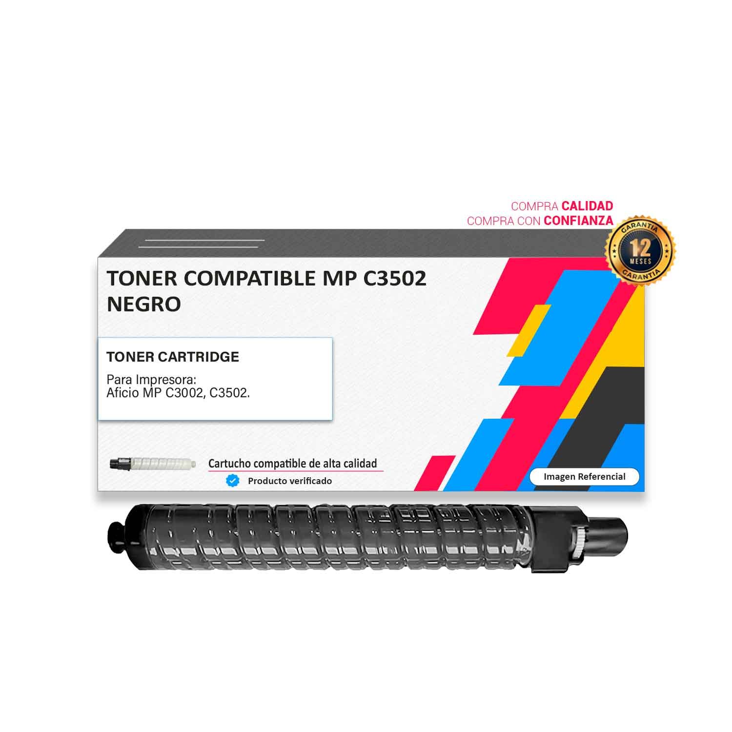Los toner o tintas compatibles son seguros para las impresoras siempre que se compren en minoristas confiables como el nuestro. Es recomendable comprar Toner compatible Ricoh MP C3502 Negro con certificación ISO y una garantía de 90 días. ¿Cómo comprar?