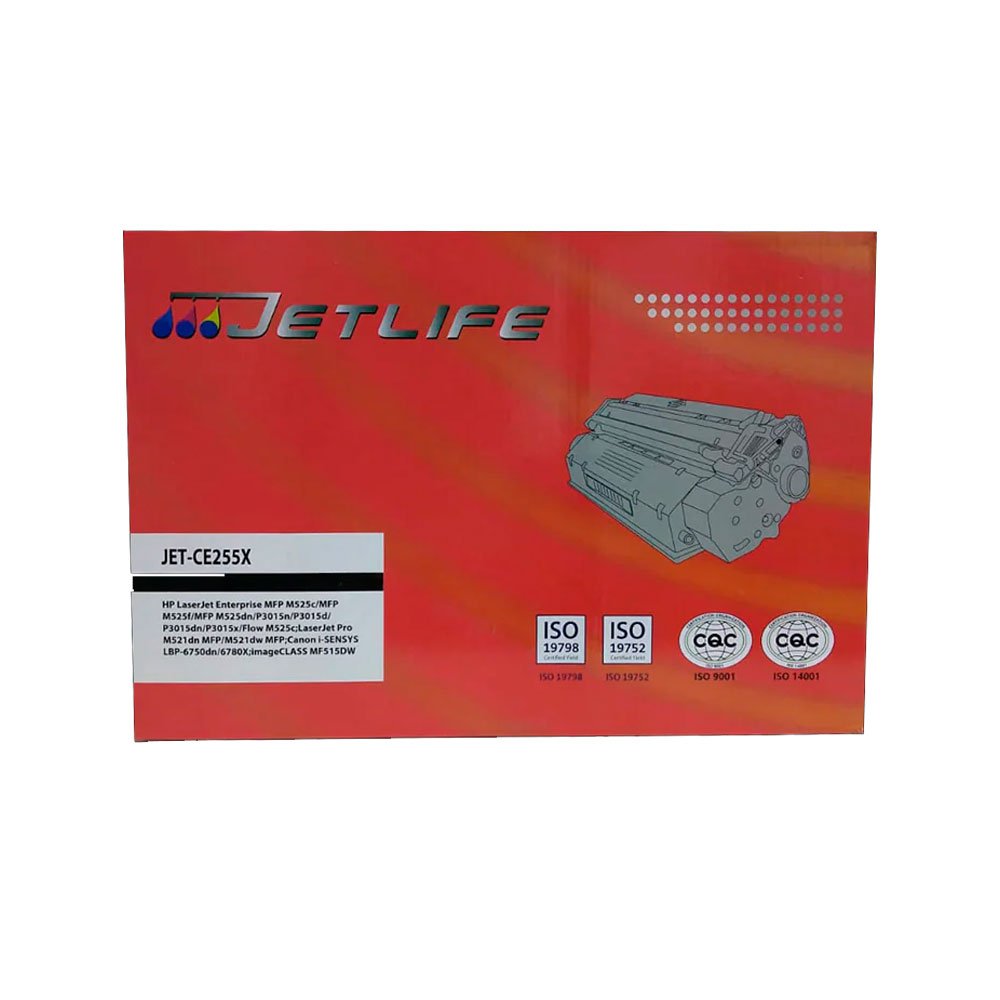 Toner Jetlife Hp 55X Negro. Toner compatible generico para impresoras HP LaserJet Pro M525DN, M525F, M525C, P3015D, M521DN. Rendimiento 12,500 Páginas.